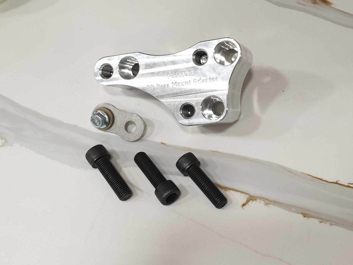 This adapter allows you to use the factory Engine Side (passenger) Festiva mount when using a BP and G-series transmission. Please note this will move the Engine forward 1.75″ to help with the G series and Intake clearance. Not intended for use with the factory E series transmission.